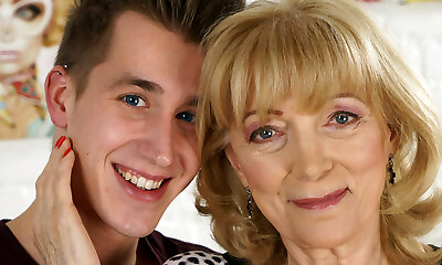 Wrinkled old slut Nanney gets a opportunity to ride boner cock on top
