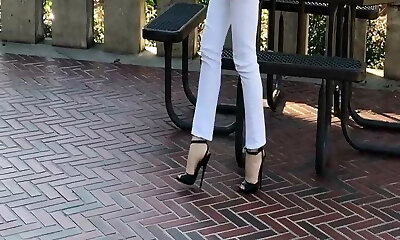 chinesische mega-schlampe mit hochhackigen schuhen und strumpf